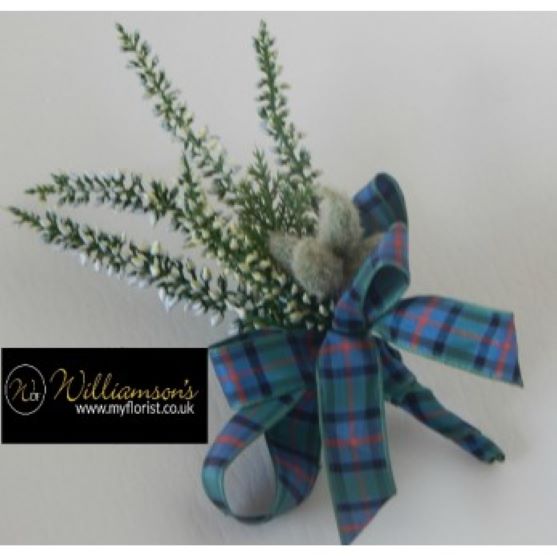 Gents Heather Buttonhole. Store Collection only. Please call 01506811433 or order online. 12 ribbon options.