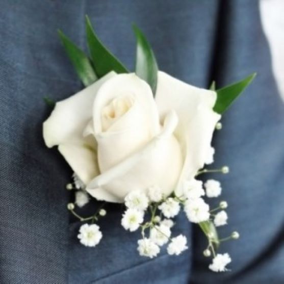 Gents Rose & Gypsophila Buttonhole. Store Collection only. Please call 01506811433 or order online. 7 colour options.